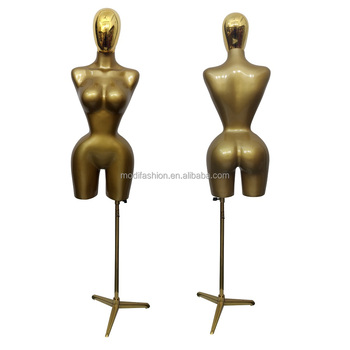 Maniquí de cuerpo Superior con curvas para mujer BBL, caderas pequeñas, busto Ajustable, forma de vestido sin cabeza con Torso de soporte dorado